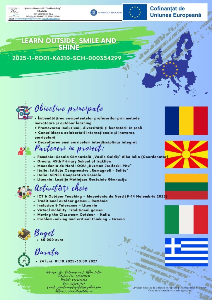 Școala Gimnazială „Vasile Goldiș” Alba Iulia are bucuria de a anunța debutul proiectului european, 2025-1-RO01-KA210-SCH-000354299, cofinanțat de Uniunea Europeană.